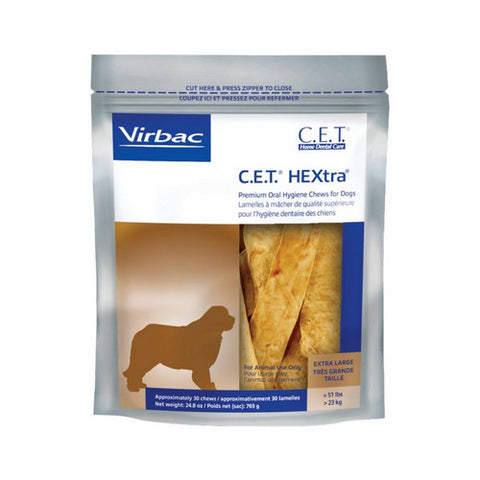 C.E.T. HEXtra Premium Oral Hygiene Chews Large Dog 30 Count by Virbac