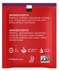 Ingredients: hibiscus, rosehips, lemongrass, orange peel, chicory root, natural blackberry flavor, natural acai flavor, acai powder, licorice powder.
